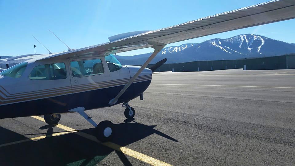 About ten miles out from the airport, we started our pre-landing checklist, and Dave rejoined the radio dialogue and determined there were two jets, a helicopter, and a small plane (which I would find out was equipped with skis later!) all dancing around the Lake Tahoe Basin. By the time we were flying over the airport, one of the jets said he was on final, but he was so far away we couldn’t see him, and the helicopter was just a glint of light against the snowy peaks. To those pilots who learned to fly out of busy, towered airports, I salute you. Knowing there was just four other aircraft airborne nearby had my head on a swivel that would make a fighter pilot proud.