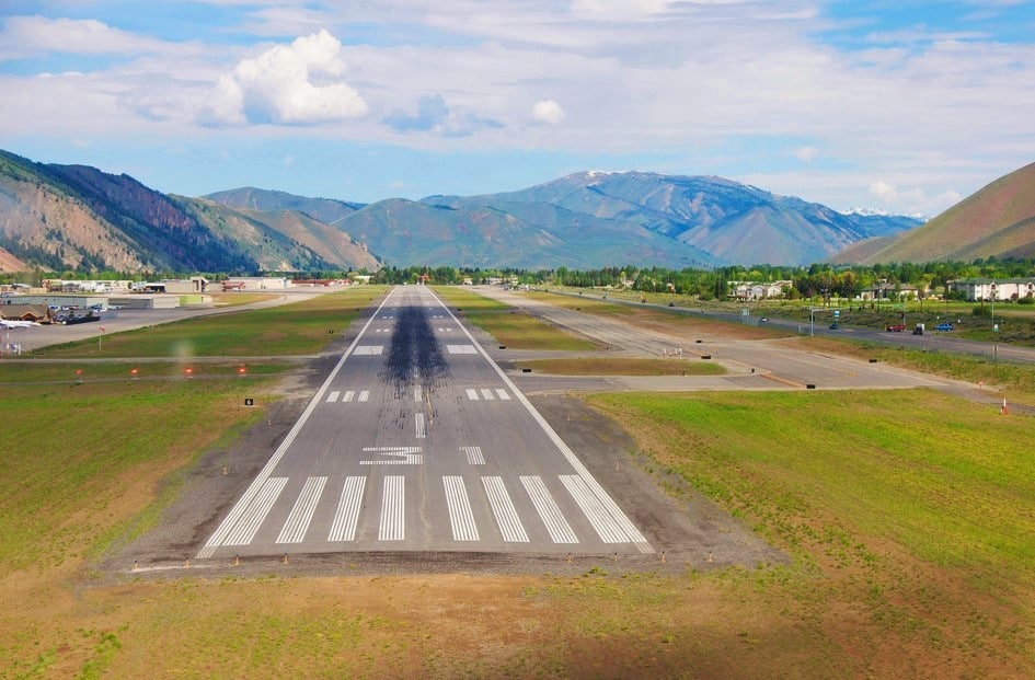 The runway elevation is 5,319 feet, and Runway 13/31 is 7,550 x 100 feet. Because the airport lies in this narrow valley, and because the terrain rises relentlessly toward the north, most landings are made uphill on Runway 31 and most takeoffs downhill on Runway 13. Contact the tower for advisories at least 10 miles out at 125.6. Numerous side canyons funnel air into the Wood River Valley. Any time you are flying in this valley, be aware that if winds are coming from the east or west, you may get significant bumps each time you come abeam one of these side canyons. Generally speaking, winds are lighter earlier in the day.