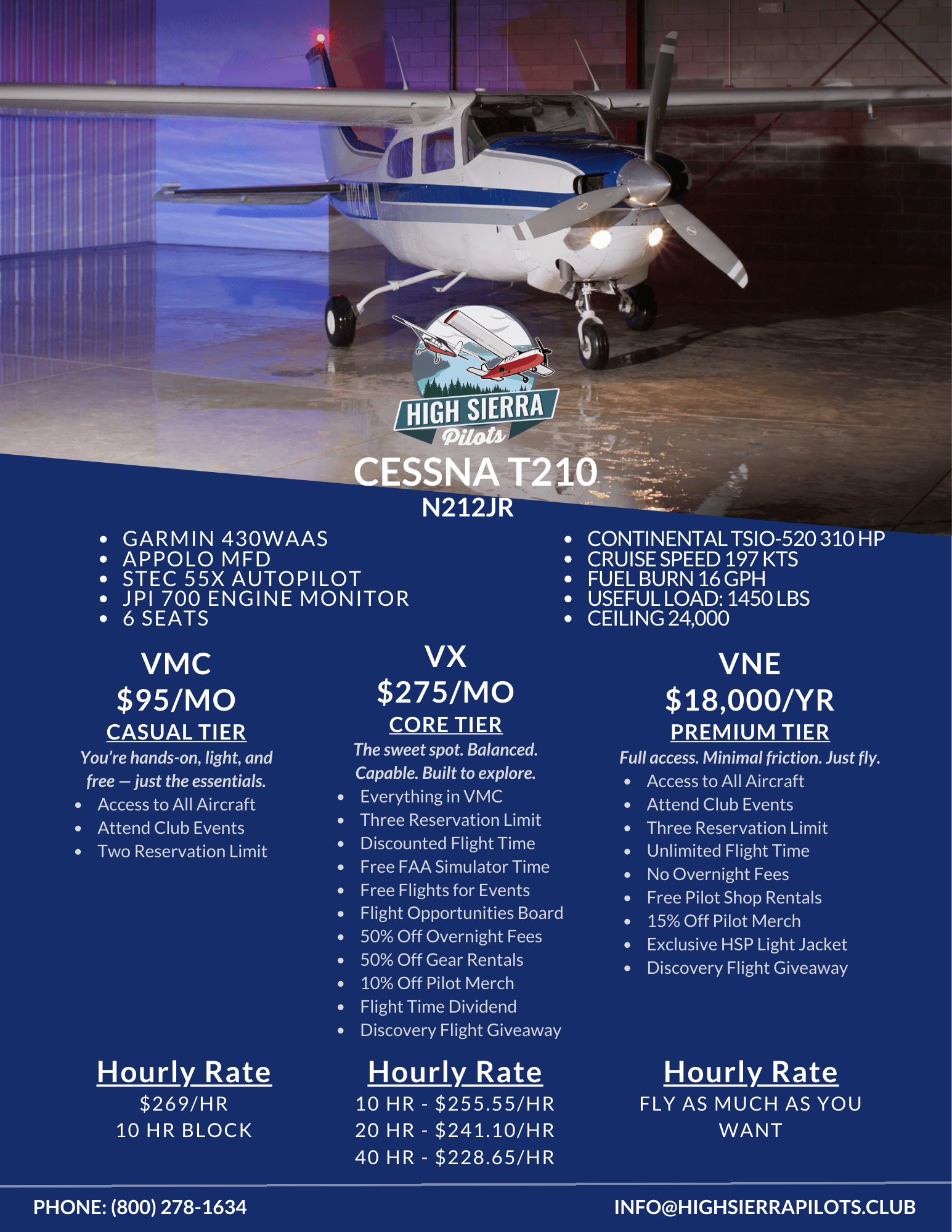 At High Sierra Pilots, every member has access to the entire fleet—including our aircraft, simulators, and training resources. When you join HSP, you’re not tied to a single airplane—you’re joining a community built around variety, freedom, and flexibility.