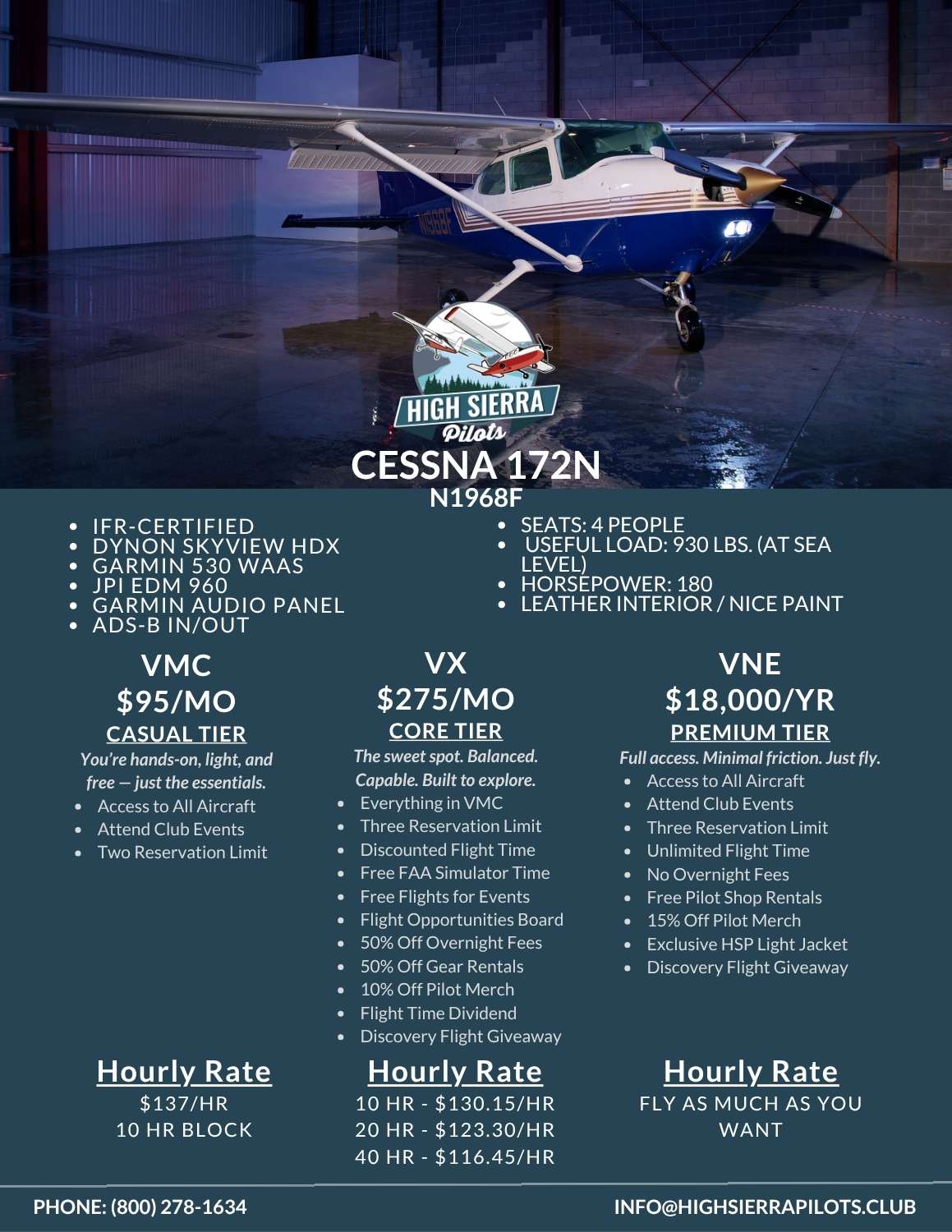 At High Sierra Pilots, every member has access to the entire fleet—including our aircraft, simulators, and training resources. When you join HSP, you’re not tied to a single airplane—you’re joining a community built around variety, freedom, and flexibility.
