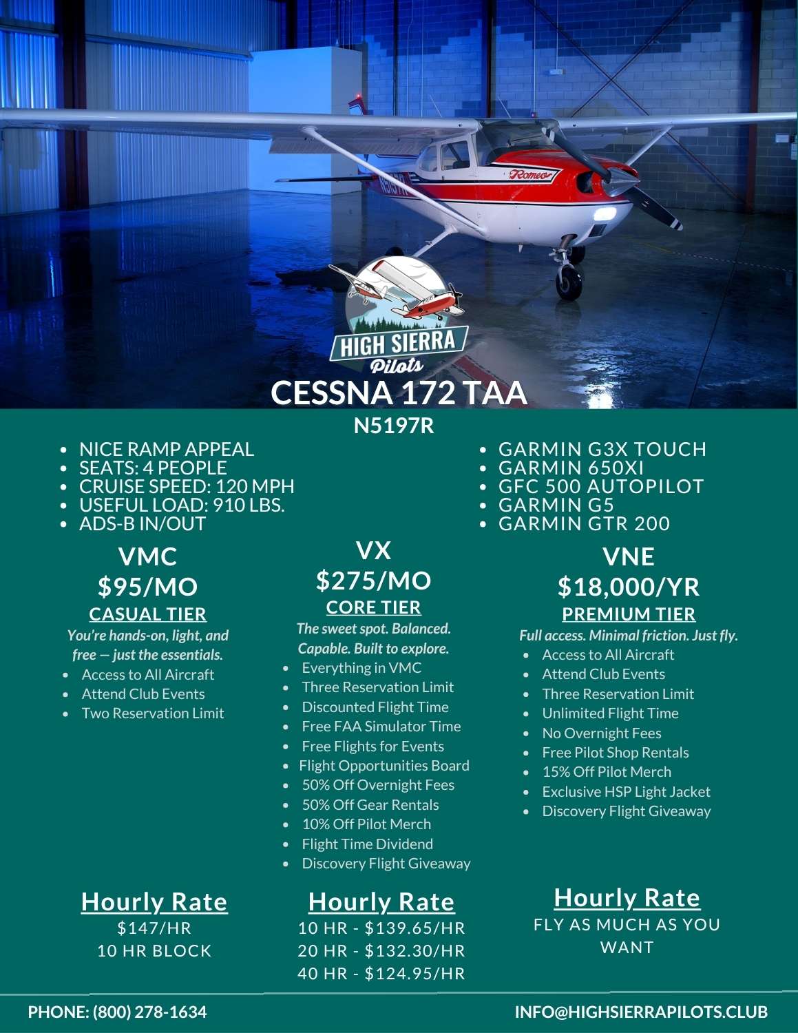 At High Sierra Pilots, every member has access to the entire fleet—including our aircraft, simulators, and training resources. When you join HSP, you’re not tied to a single airplane—you’re joining a community built around variety, freedom, and flexibility.